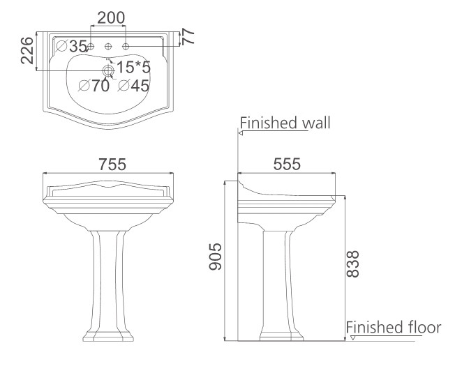 Раковина Creo Ceramique DIJON 750х550х905, с пьедесталом, белая